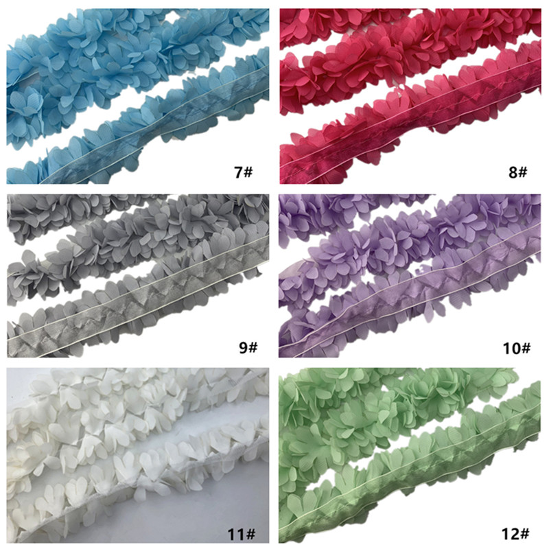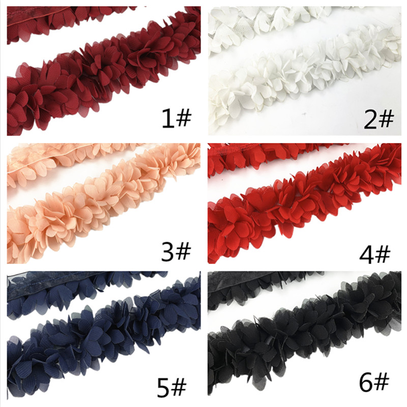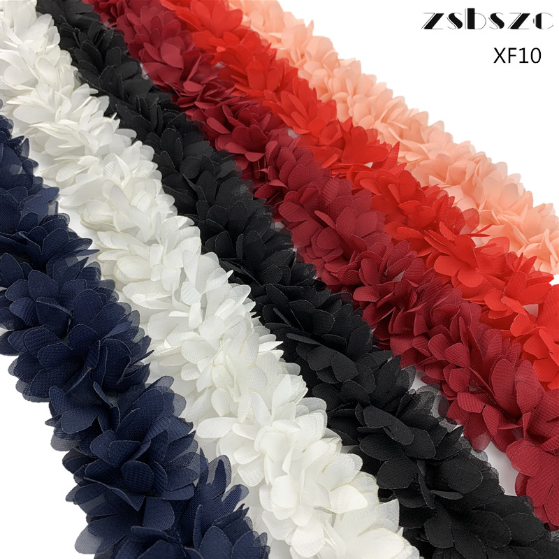 90CM 3D Chiffon Flowers DIY 6cm Width lace trim lace ribbon Lace Dress Decoration Fabric Applique Sewing Supplies XF10