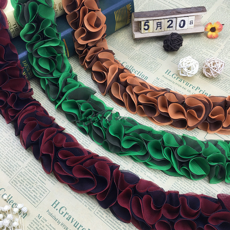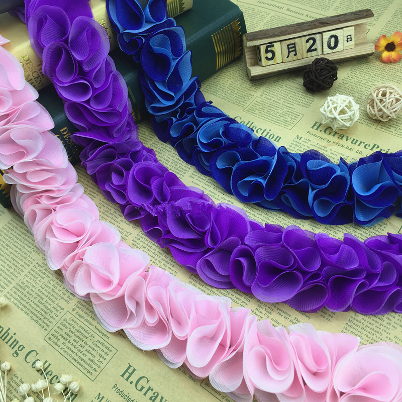 Flowers Chiffon Cluster Lace Trim Bride Wedding Dress Decoration Lace Ribbon Fabric Applique Trimming Sewing Supplies XF06