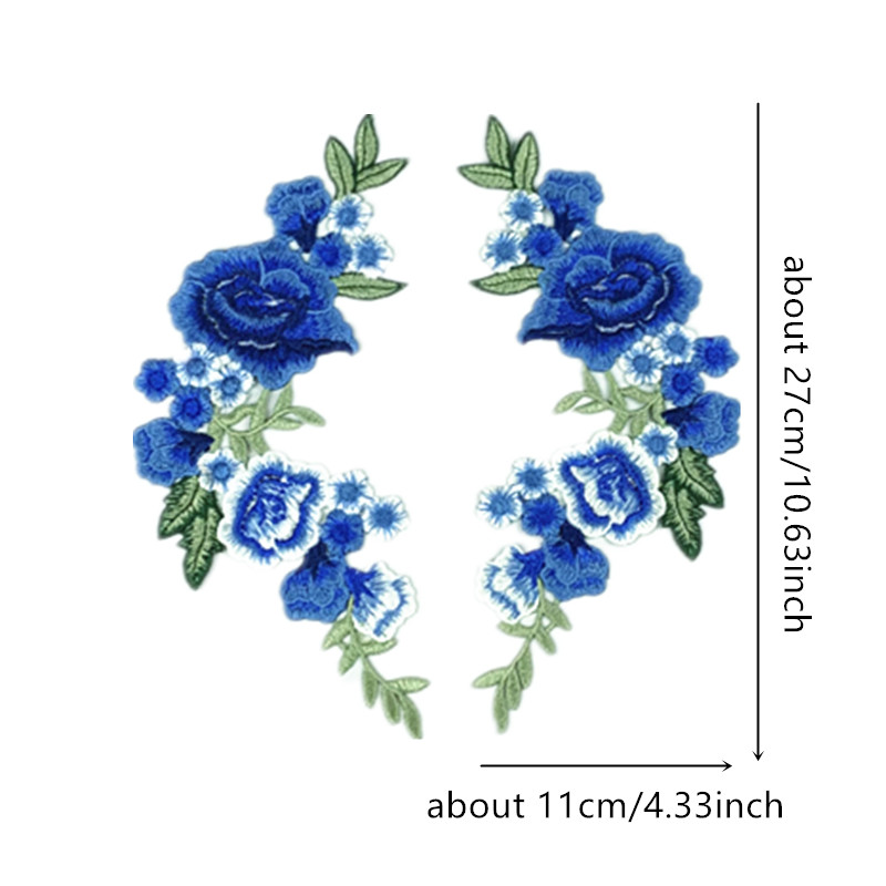 zsbszc new fashion 1pair 27X11cm Embroidered Applique Flower patch sew on cloth wedding gown clothing accescies CA04