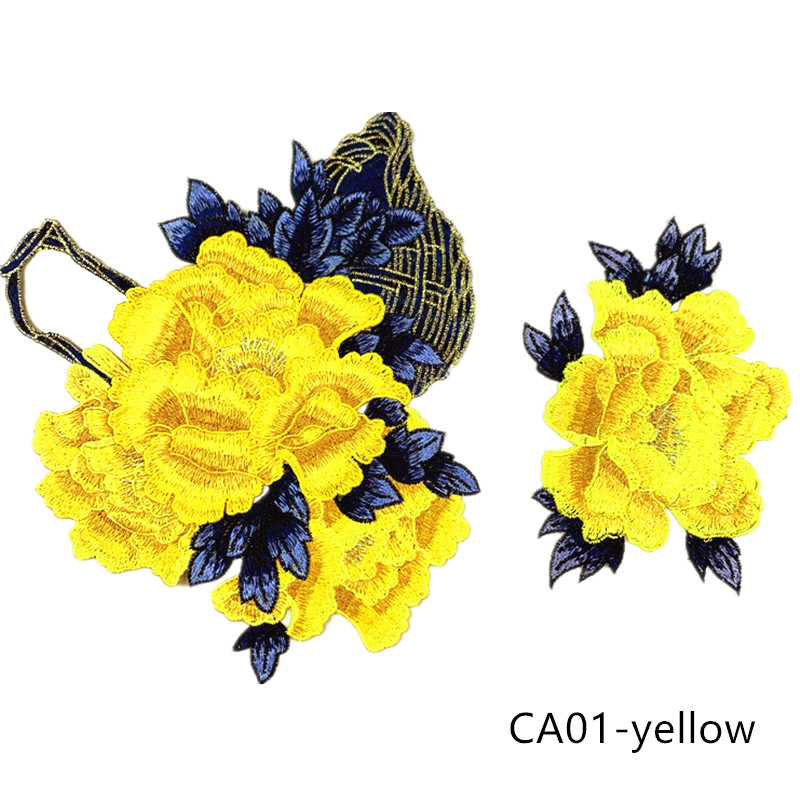 zsbszc new fashion big 1pcs red rose yellow Embroidered Applique Flower patch sew on cloth wedding gown clothing accescies CA01