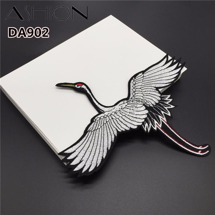 1 pair embroidery Iron stick Dress trousers lace applique flower Red-crowned cranes patch dancing garment accessories DA902