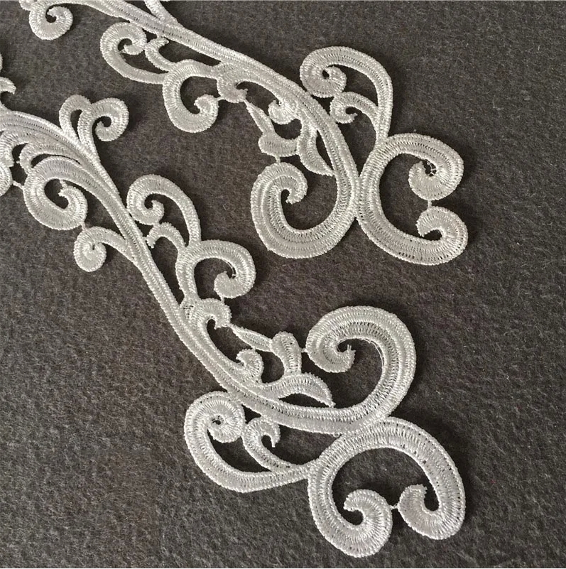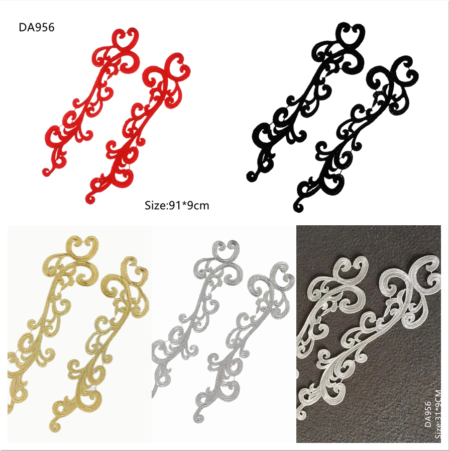 5PCS zsbszc new 31X9CM 5 pairs white Fashion wedding Lace Appliques Embroidery Patches sew on Apparel Trims Diy Cosplay DA956