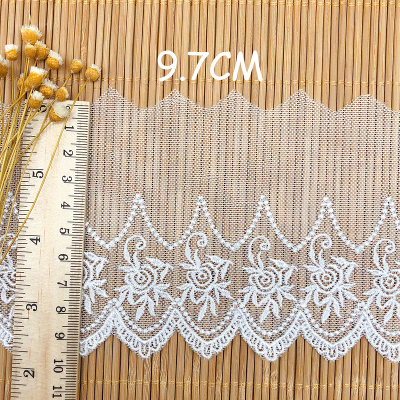 Width 9.7cm Tulle mesh water soluble polyester lace embroidered butterfly knot bar code Lolita lace for handcraft WB27