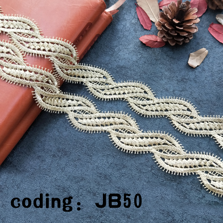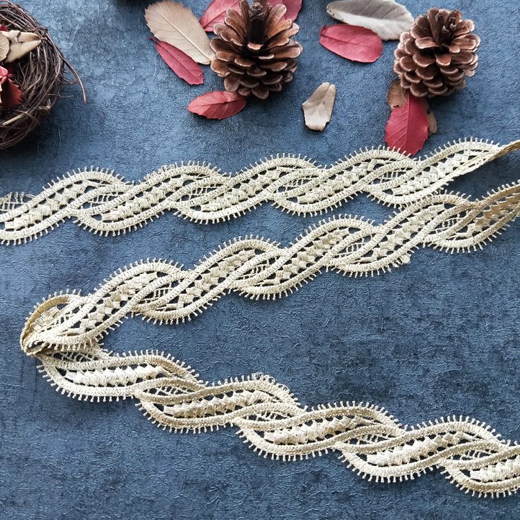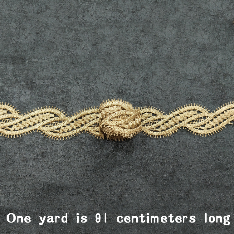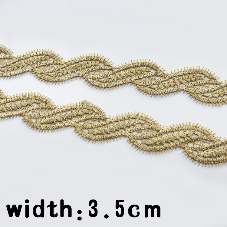 (2 Yards) CHICKNIT wide 3.5cm Golden Hemp flowers Embroidery Curvilinear Lace trim for dress accessories JB50