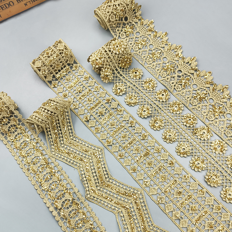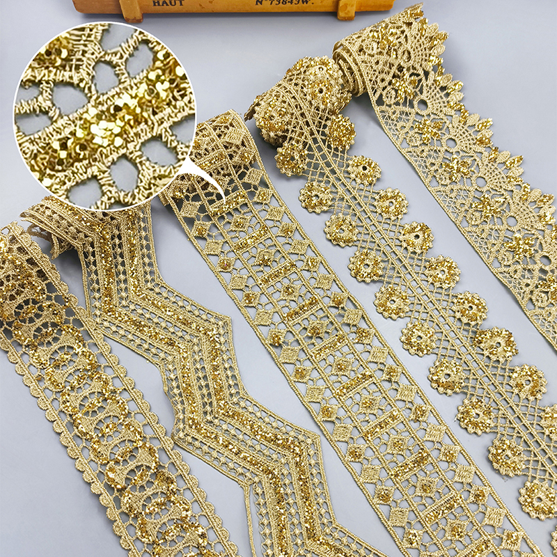 2 yards Hollow shining latest high quality gold lace cheongsam clothes hem curtain lace fabric DIY accessories SF08 -SF12