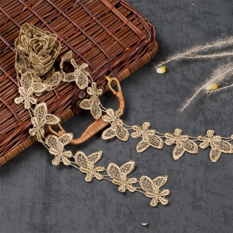 Materials: Environmental metallic embroidery threadWidth: 45MM(+/-5MM)Color: (as shown) gold
