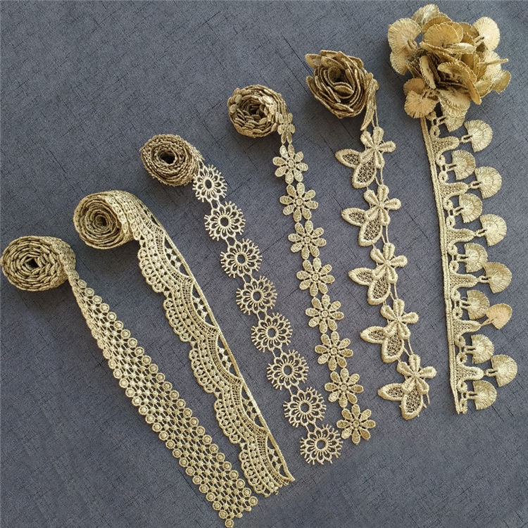 3 yards dot gold Venise Lace Fabric Sewing Edge Wedding Lace Trim DIY Garment Accessories Width 27mm JB17
