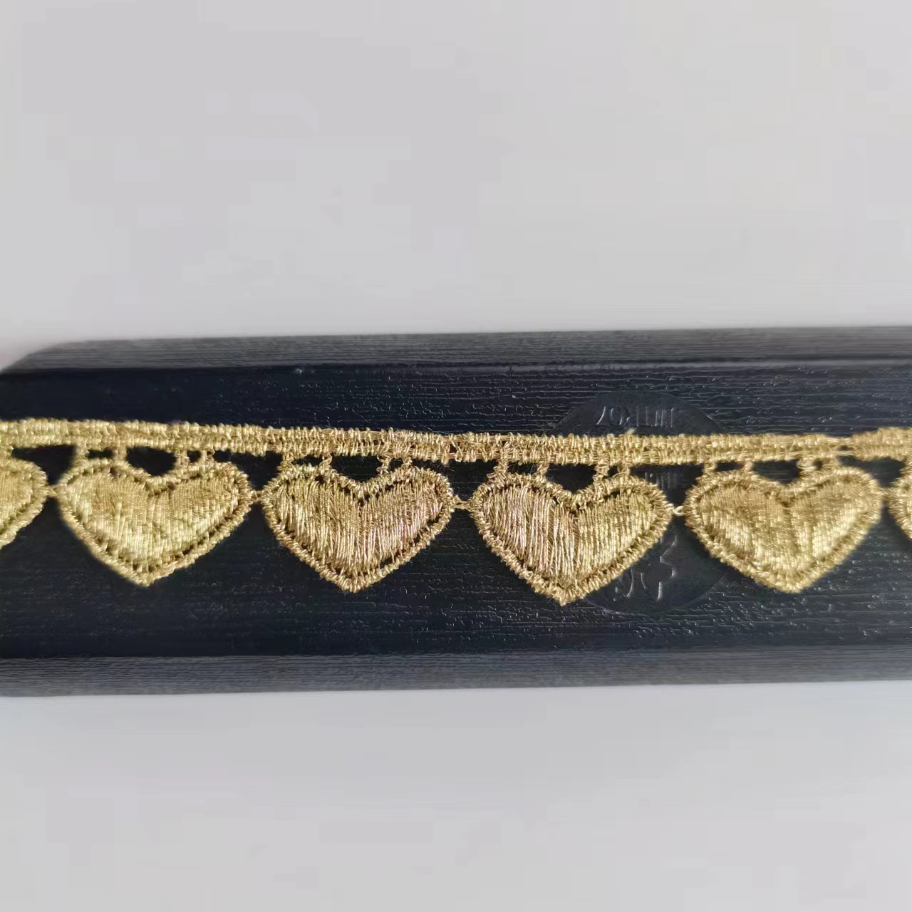 CHICKNIT width 2CM heart lace trim good quality free ship gold line water soluble embroidery lace trim ribbon lace fabric JB33