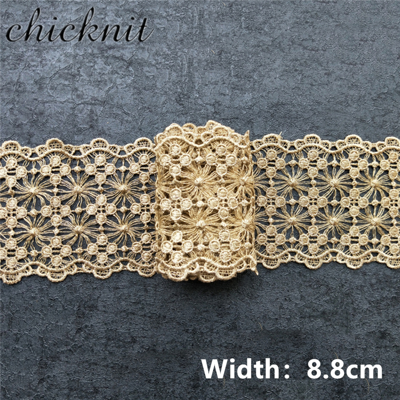 CHICKNIT Width 88mm new Golden DIY water soluble Embroidered guipure lace Trims sewing on clothes accessories JB14