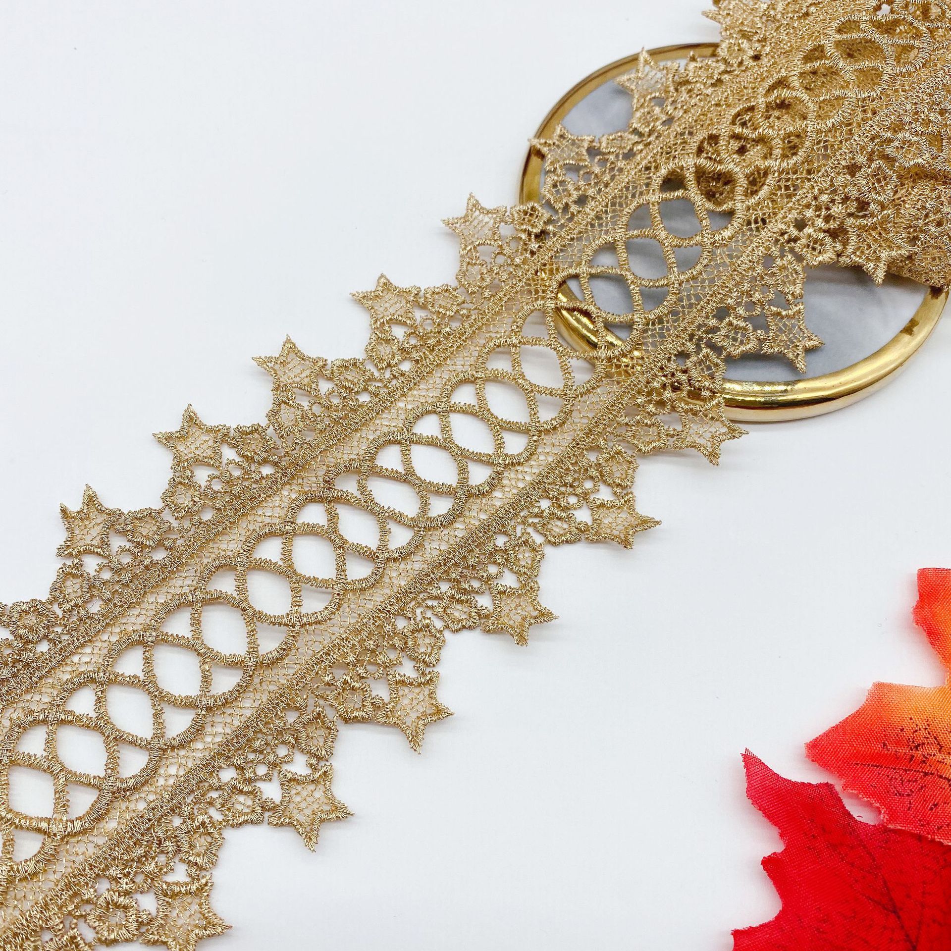 Double sided crossing of gold thread and lace Embroidered Net Lace Fabric Trim Ribbons Diy Sewing Handmade Craft Materials JB108