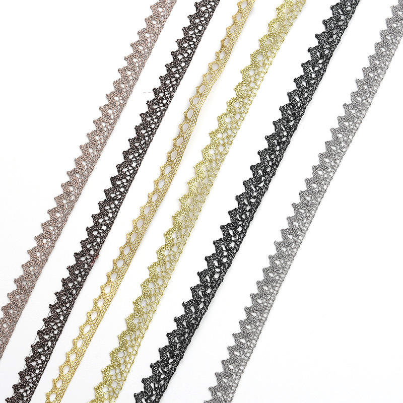 Metallic Yarn Knitting Golden Narrow Fancy Scalloped Wave Border Light Gold Lace Trim ZD133