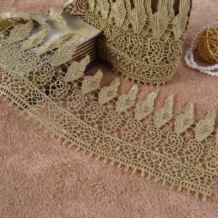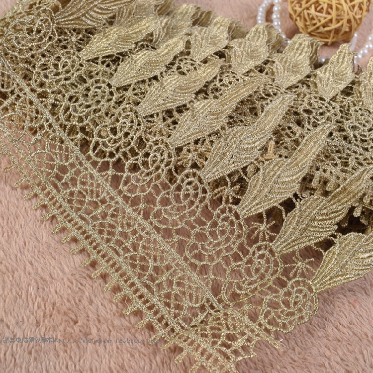 Materials: Environmental metallic embroidery threadWidth: 138MM(+/-5MM)Color: (as shown) gold