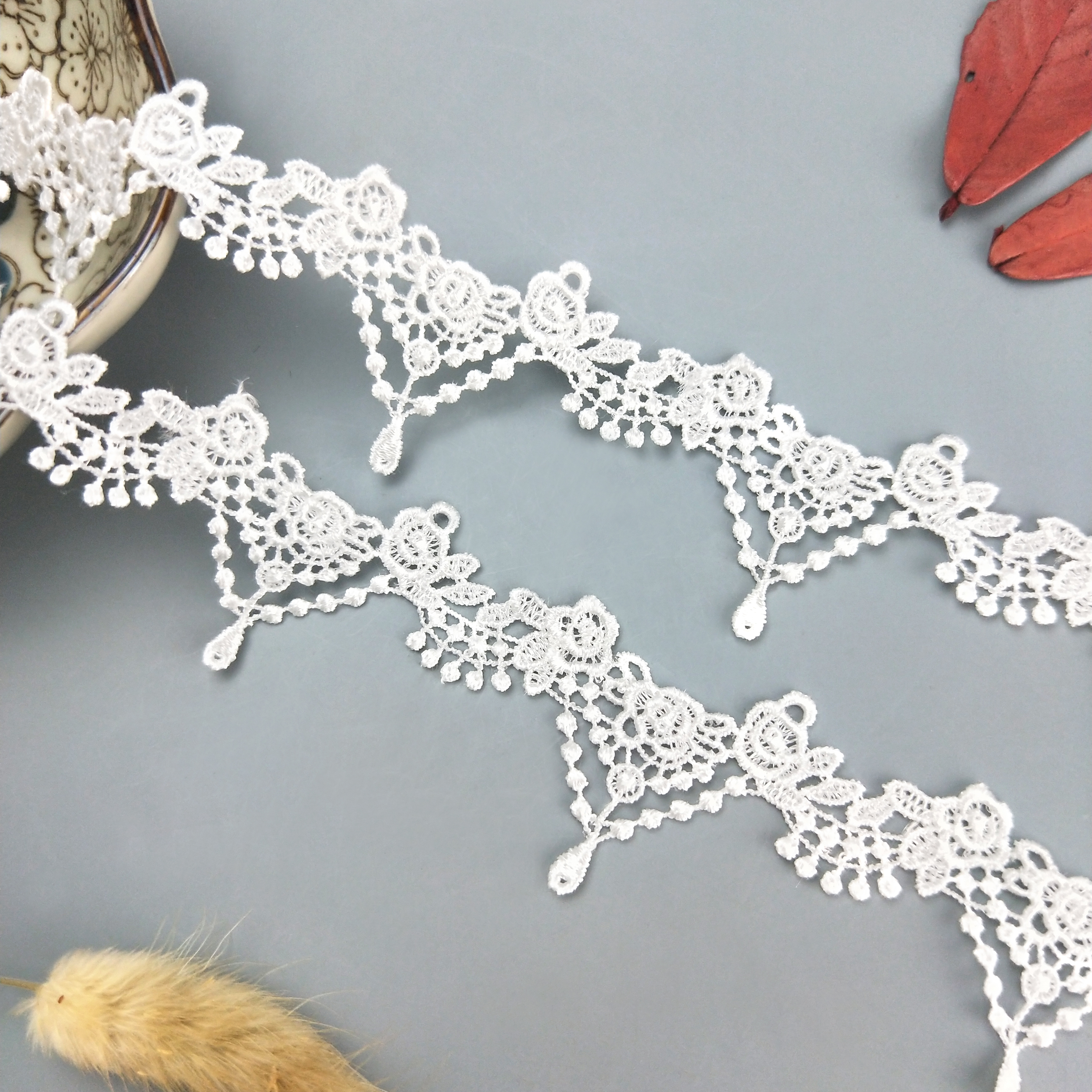 white lace trim lolita lace DIY tassel garment