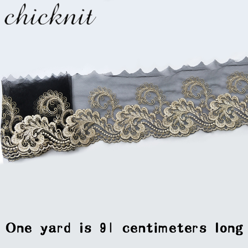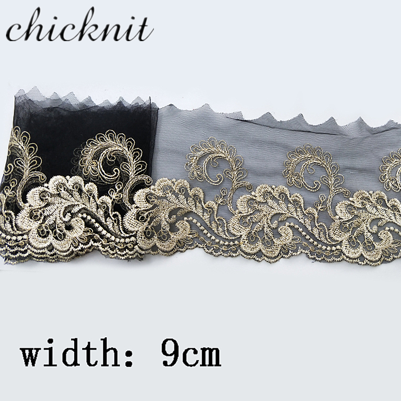 (2 Yards) CHICKNIT width 90mm black net flower lace ribbon for Sewing DIY Doll Dress Accessorie WB10