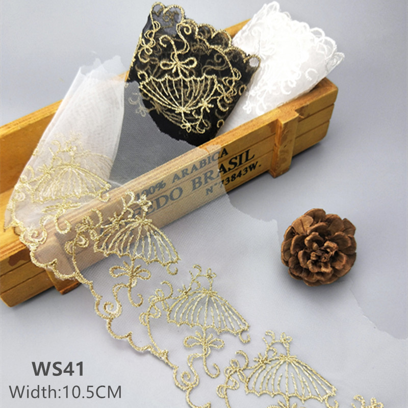 10 yards fashion Mesh Lace Trim 10.5cm Umbrella lace fabric dress sleeve skirt decoration white golden black mesh free ship WS41