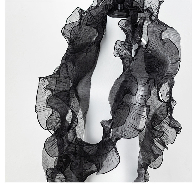 12cm width Shimmer Gradient Mermaid Sheer Organza Transparent Bright Wave Single Ruffle Lace Trim 3D Pleated Mesh Lotus Leaf Fabric WB36