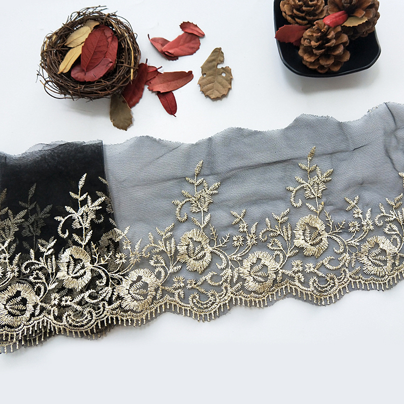 Materials: net,gold Environmental metallic embroidery threadWidth: 135MM(+/-5MM)