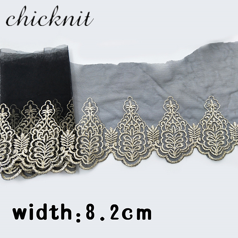 2YARDS CHICKNIT width82mm black net for Wedding Dress Embroidery Tuxedo lace garment Headscarf accessories WB13