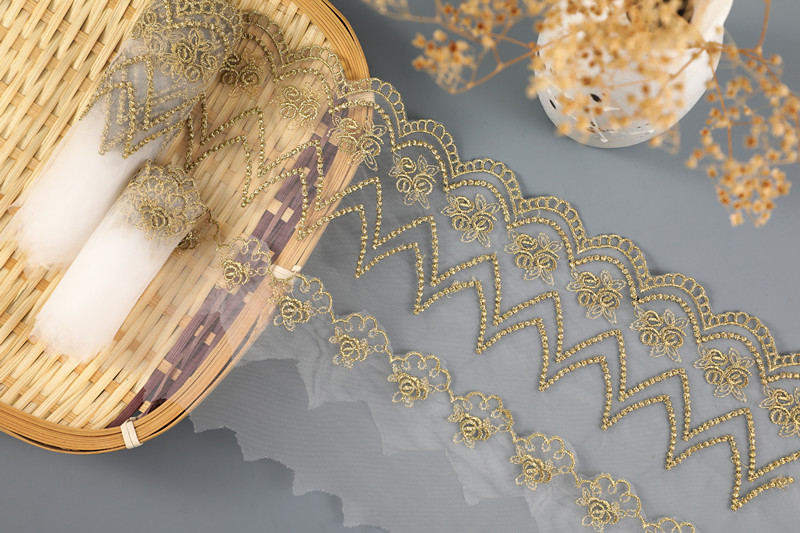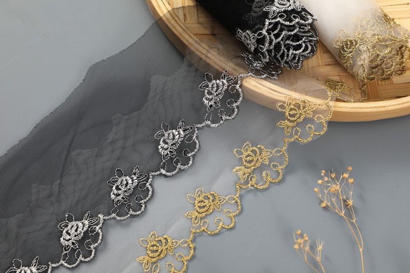 CHICKNIT 10 yards new rose gold silver mesh lace trim Lolita net Embroidery lace ribbon for Sewing cloth Accessorie WS10 WS11