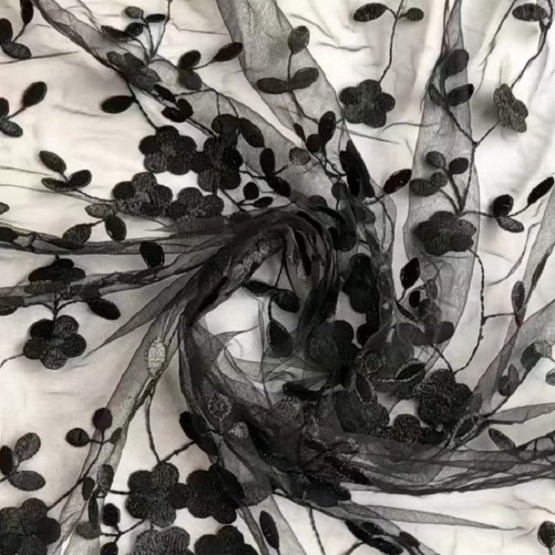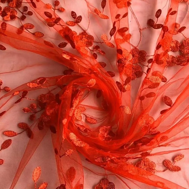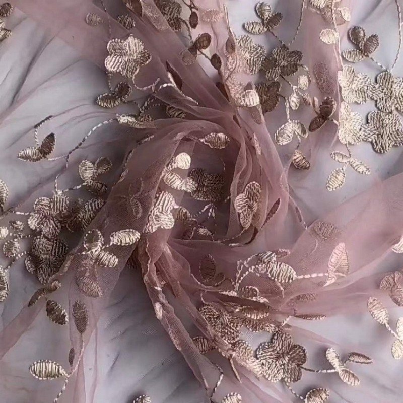 Eyelash lace wedding dress mesh lace lace fabric four leaf green grass embroidered fabric MF98