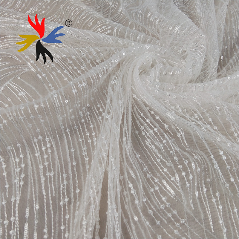 New style chemical 100% polyester floral sequined embroidery bridal tulle lace fabric