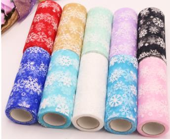 10y Snowflake Wholesale Organza For Making Dress Tulle Fabric Glitter Costume Snowflake Printed Organza Fabric HX013