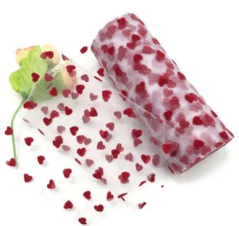 10yards Diamond mesh peach heart flocking mesh roll DIY handmade birthday decoration clothing fabric HX010