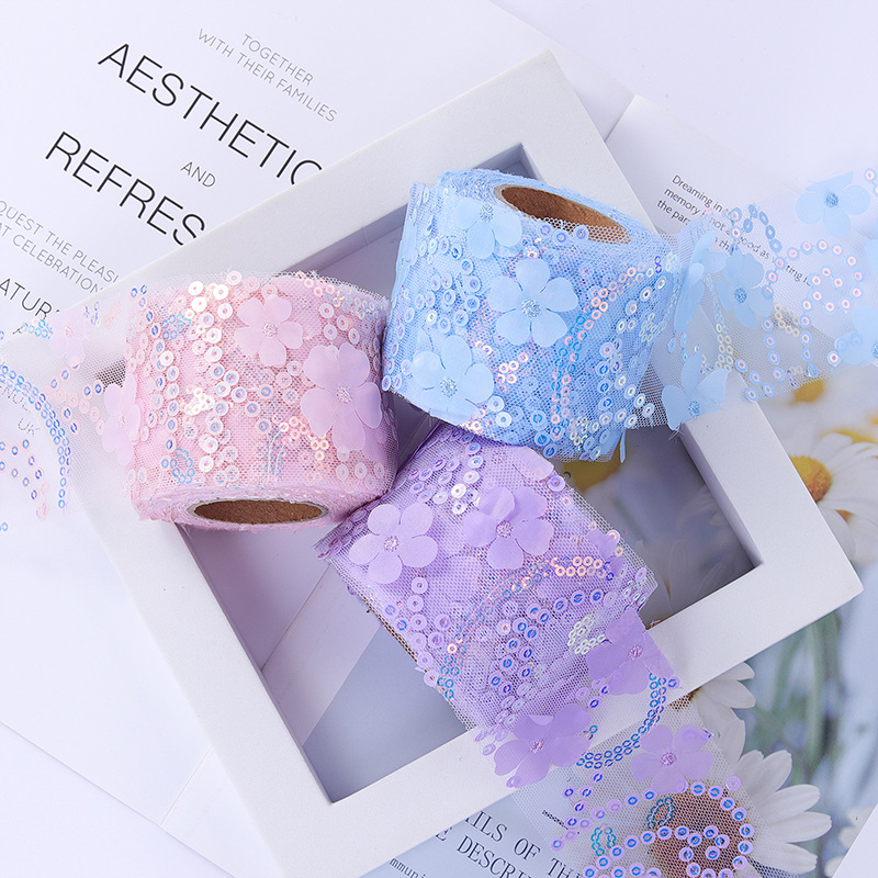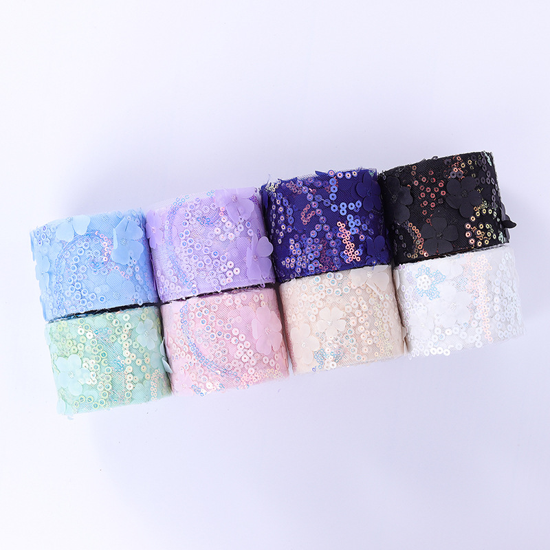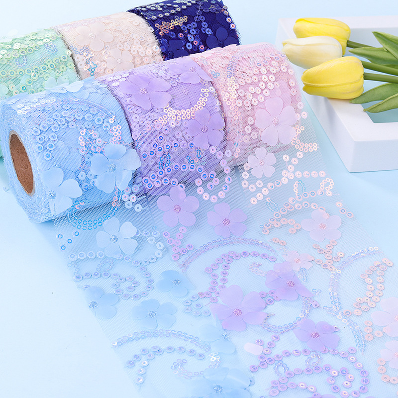6/7.5/8/10/12cm*10yards floral embroidered sequins Tulle webbing, DIY hair accessories, shoes and clothing accessories D961
