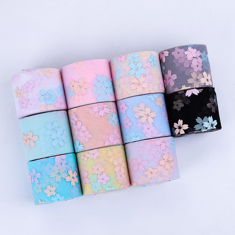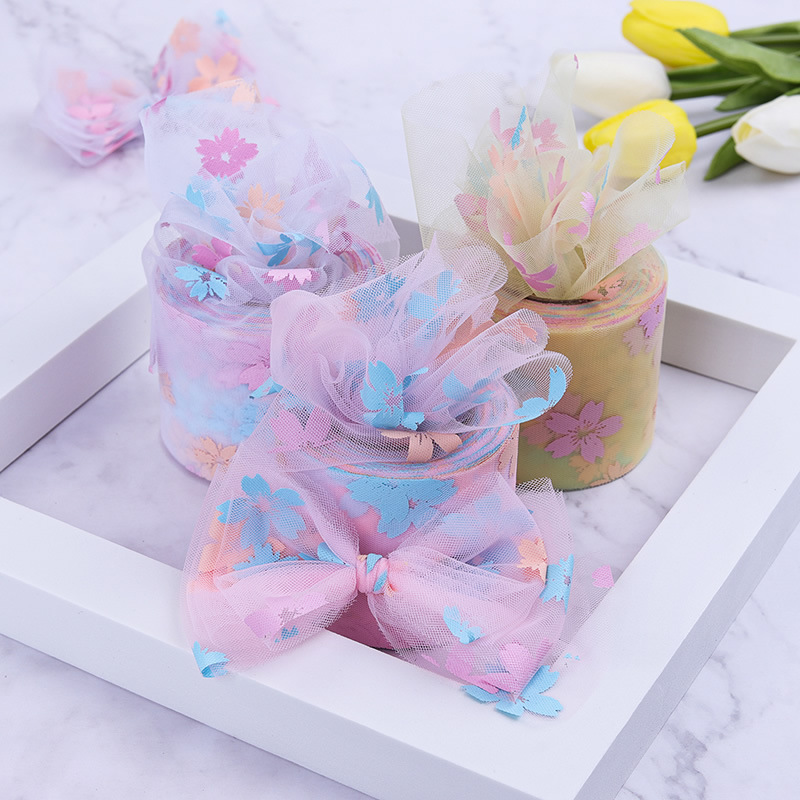 6CM*25YARDS Offset printing cherry blossom mesh roll, High density polyester mesh cloth, DIY Hair Accessories, Shoes and Clothing Accessories D963-1