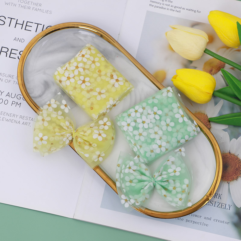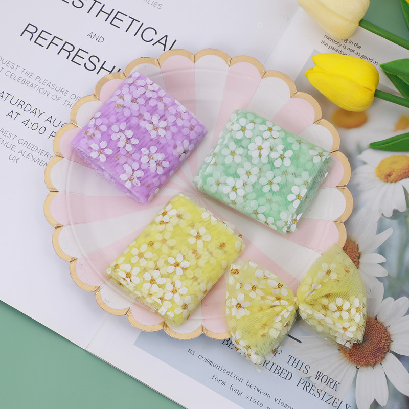 6cm/8cm*25yards Offset printed golden dot small plum blossom tulle ribbon,DIY birthday party decorations,hair bow W001