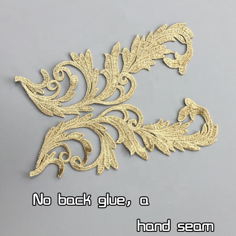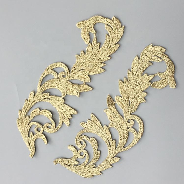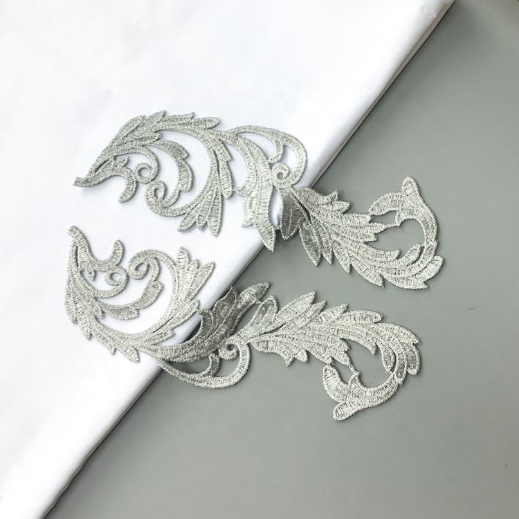 10 pairs Embroidery patches gold silver lace applique collar wedding dress accessories fabric patch JA29