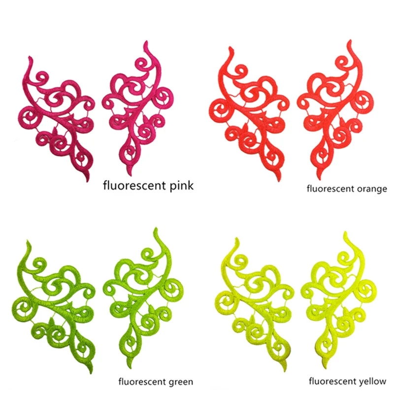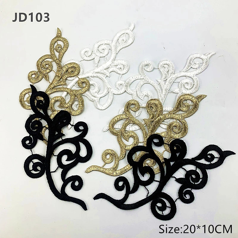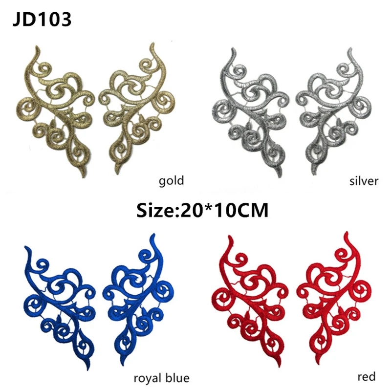 5 pairs 20X10CM gold white black blue red polyester DIY Dance costumes lace patches flowers Applique Garment accessories JD103