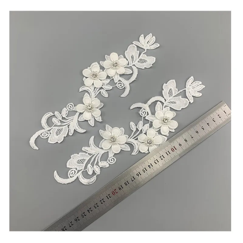 zsbszc 1 pair 25*7CM white 3D embroidery Lace flowers Applique patches Venise DIY Wedding dress Garment accessories DA948