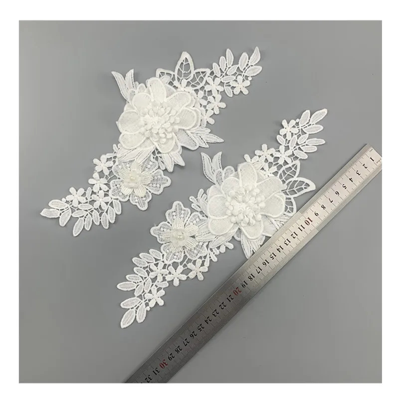 zsbszc 1 pair 28*9CM white 3D embroidery Lace flowers Applique patches Venise DIY Wedding dress Garment accessories DA947