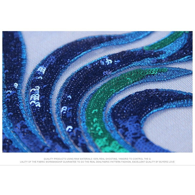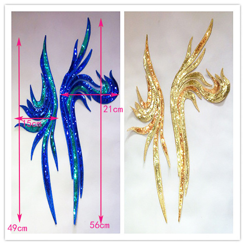 zsbszc 15*49CM 2pcs Sequin Embroidery Blue Gold Patch DIY Accessories Wedding Dress Fashion Trim Flowers Sew On Applique ZA101