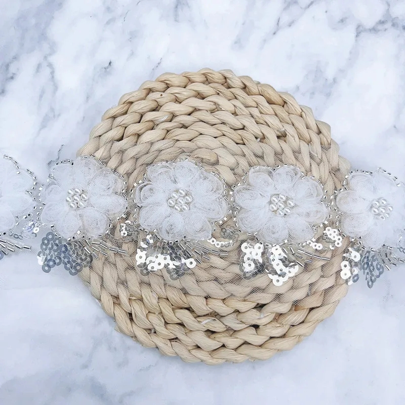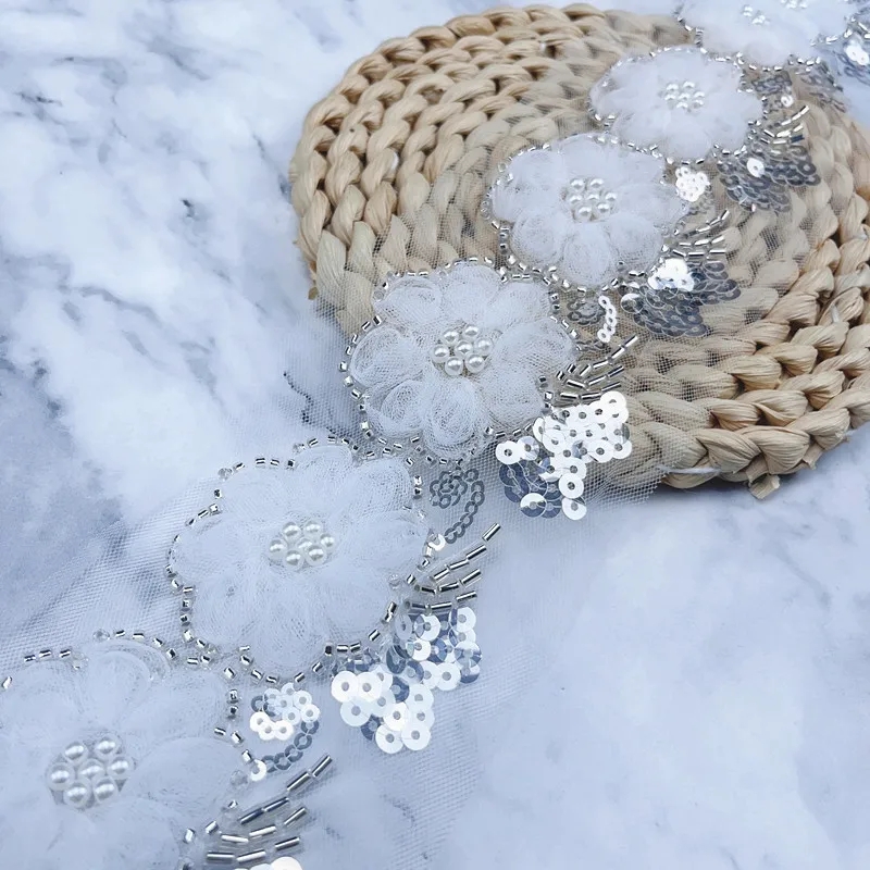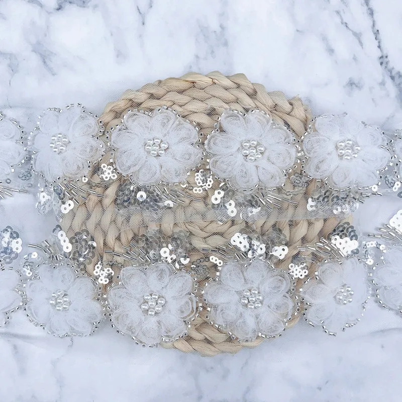 HOT 1 yard Width 6cm Wedding Flowers Belt Pearl Beaded Belt Organza Flower Women Belts Sashes Dress Rhinestone Ribbon Lace ZB132