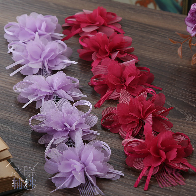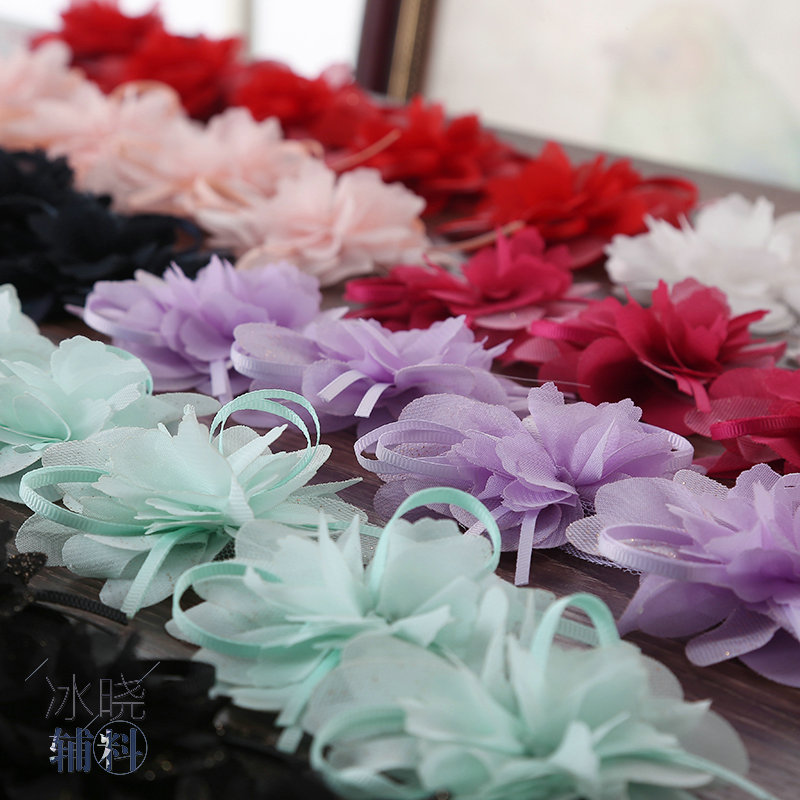 1 yard 10 flowers DIY handmade lace 8cm butterfly ribbon flower 120D chiffon XF09