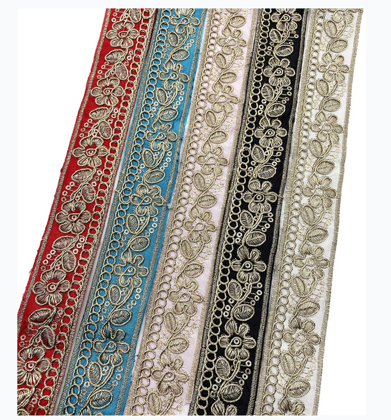 3cm bohemian style gold thread, national style embroidered sequin lace cuffs Jacquard Double-Sided Flower Embroidery Ribbon Recycled Jacquard Webbing ZB012