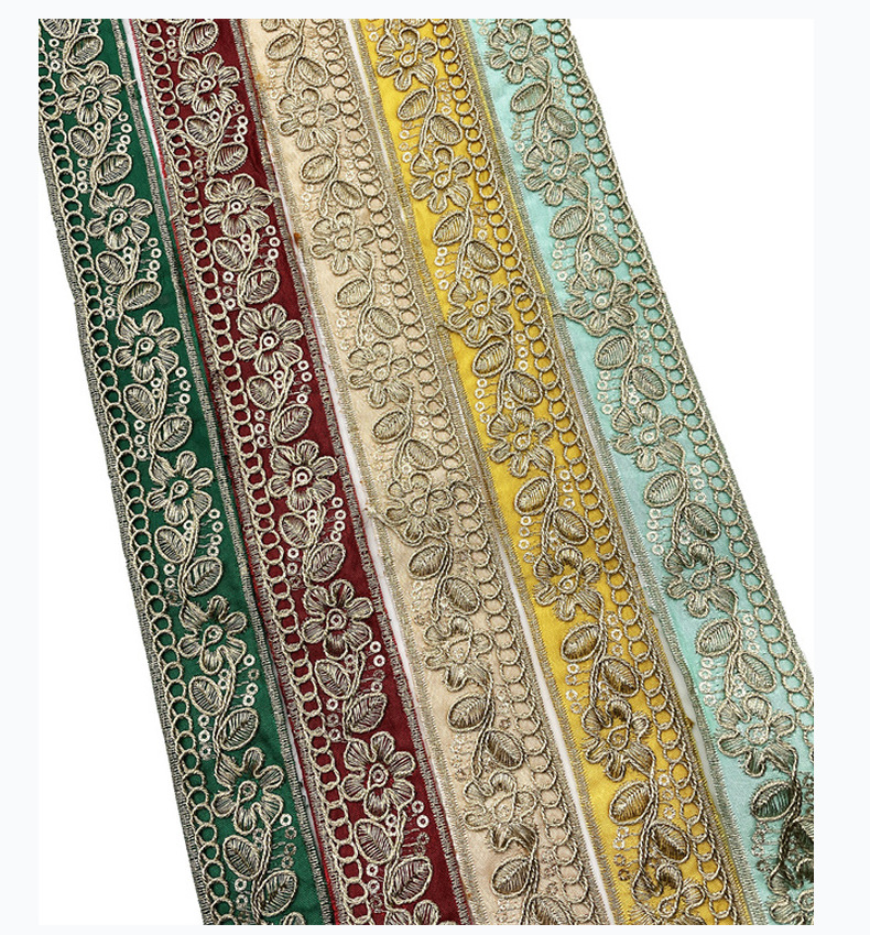 bohemian style gold thread, national style embroidered sequin lace