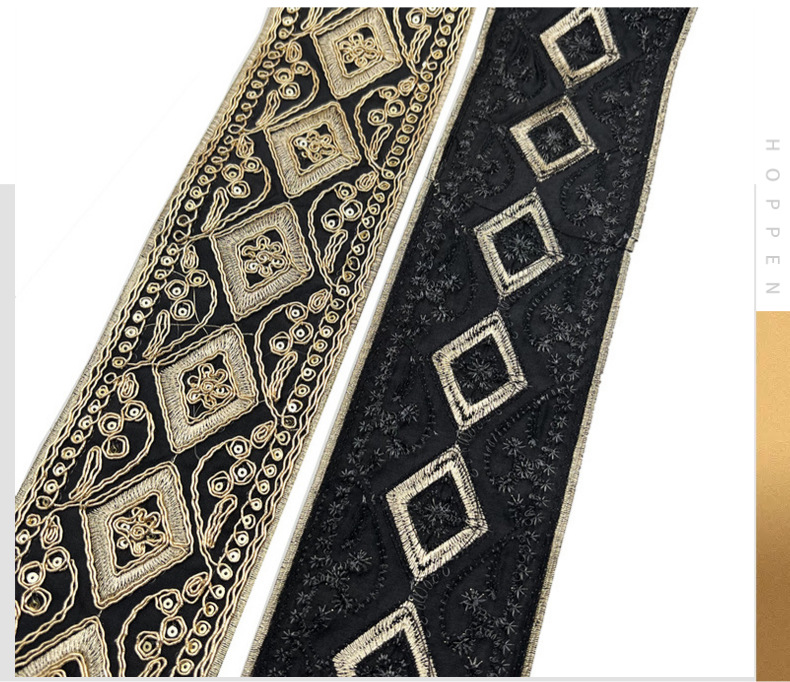 Retro gold sequin lace, national style skirt lace decorative accessories