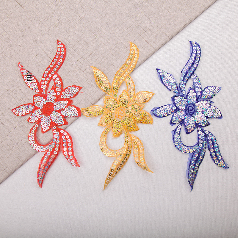 Home / Ethnic embroidery fabric with sequin stickers Flower LACE Patch Bridal Wedding Dress Embossed Beading Embroidery lace Appliques CA063